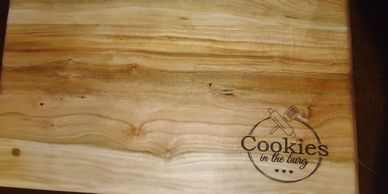 This board is great to use as a cutting board or cheese platter. It measures approx. 10.5 inches long x 7.75 inches wide and .75 inches thick. This one is made from walnut, maple, and purpleheart. Woods will vary.